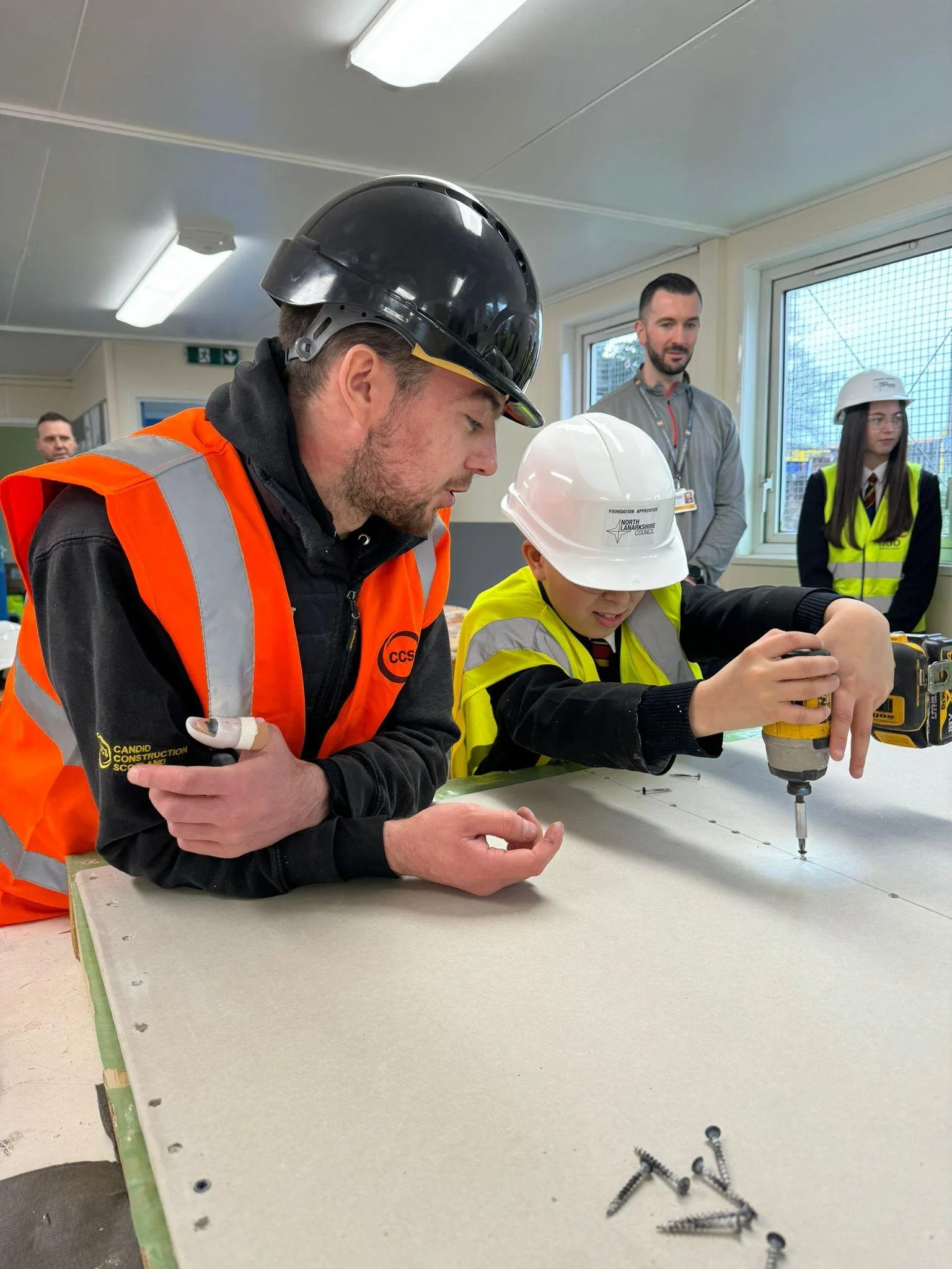 We attend careers fairs across North and South Lanarkshire providing industry insight, CV guidance, and routes into apprenticeships. Recent engagements include a Future Skills & STEM presentation at Cumbernauld High School and a hands-on joinery workshop at Bellshill Academy.